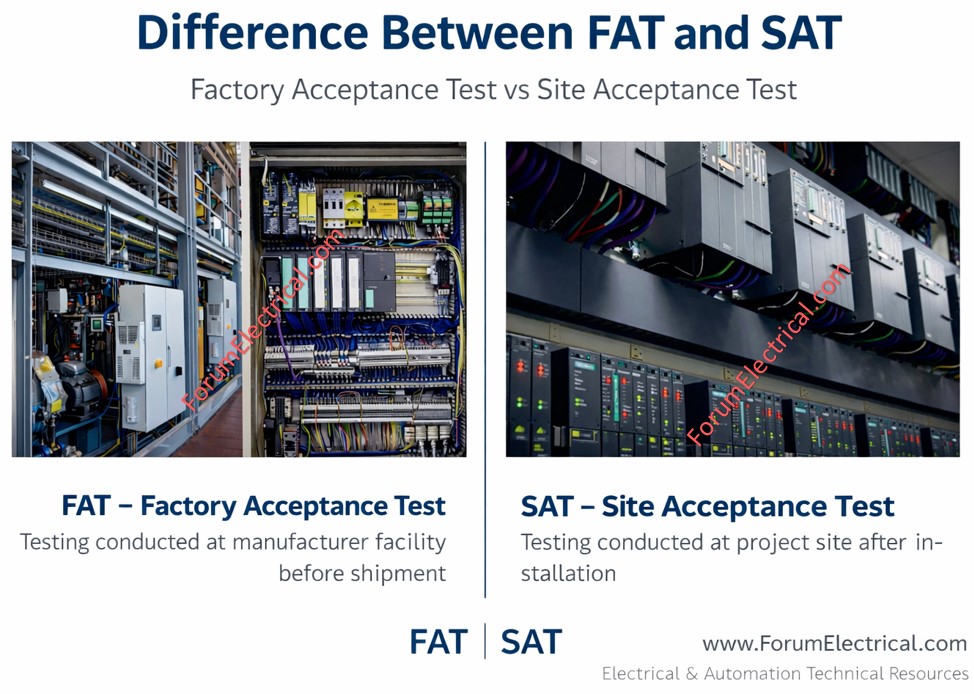 FAT and SAT are complementary testing procedures in the electrical and automation projects.