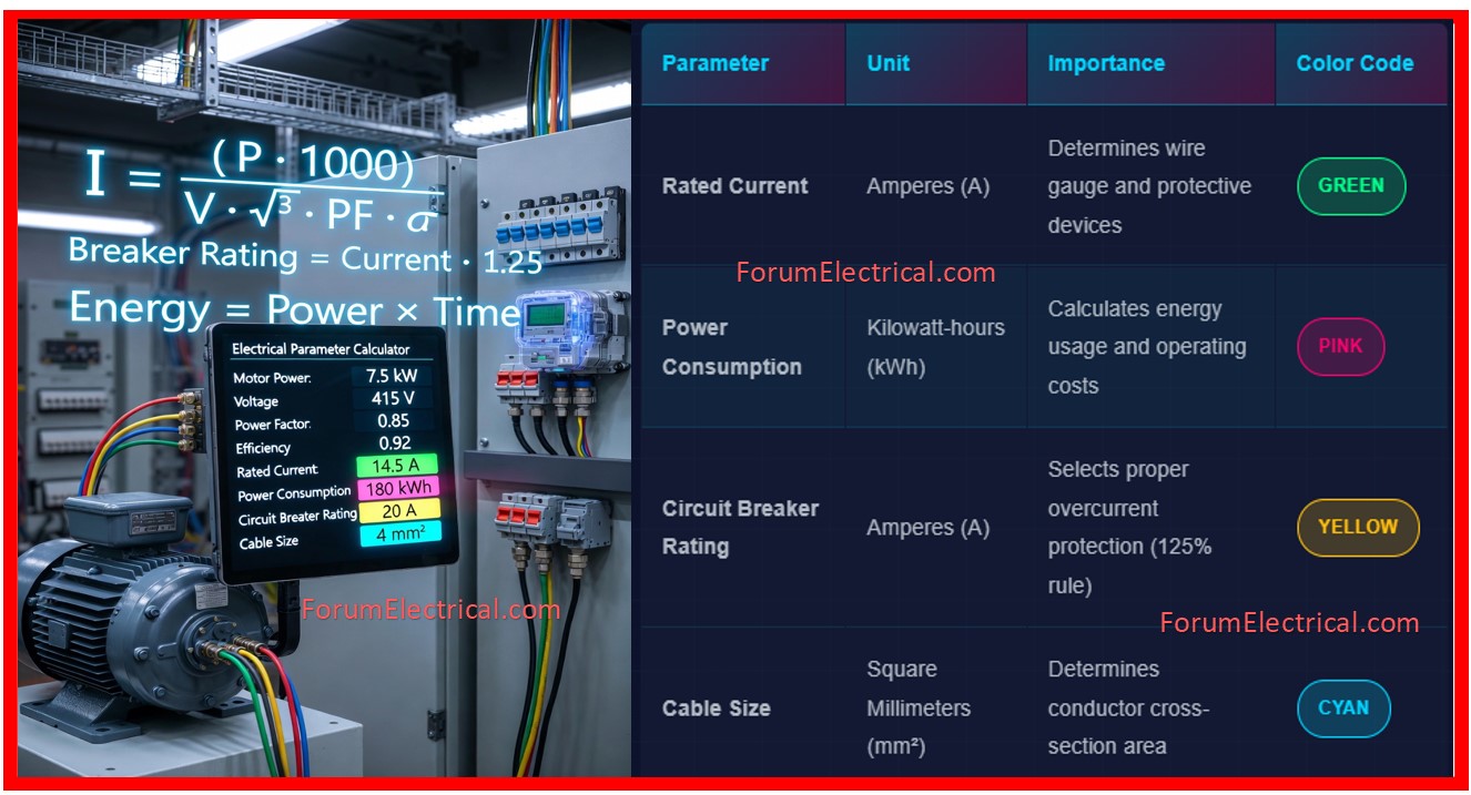 Our calculator quickly calculates the 4 essential electrical parameters that form the foundation of every motor circuit design: