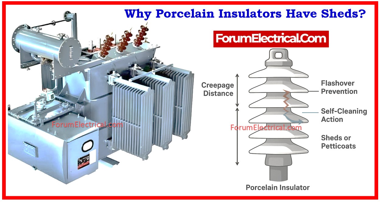 Purpose: Sheds work by lengthening the surface path (creepage distance) & forming several steps along the surface, forcing any leakage current to traverse a longer, more convoluted path.